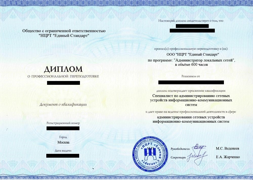 • «Специалист по администрированию сетевых устройств информационно-коммуникационных систем» с правом ведения профессиональной деятельности в сфере администрирования сетевых устройств информационно-коммуникационных систем