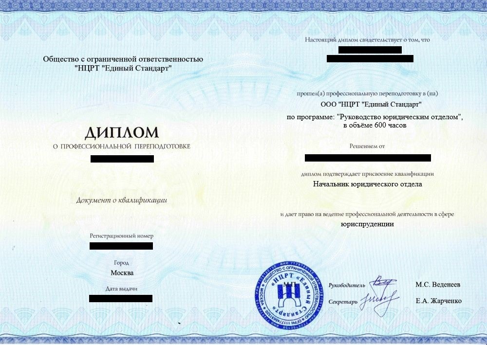 - Диплом о профессиональной переподготовке установленного образца. Срок действия: бессрочно